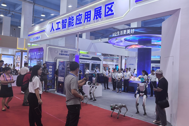 在人工智能应用展区,人形机器人、赛博宠物、VR智慧城市体验等一批人工智能成果集中呈现,沉浸式体验让“数字玉林”的建设成果变得可触可感,展现了玉林市数字政府、数字经济、数字社会、数字基础设施、数字安全发展成就,旨在引领中小企业绿色化、智能化、数字化、高端化发展。
