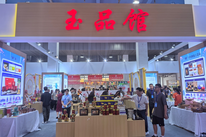在玉品馆,“玉”字号系列知名品牌、玉林市代表性及地标性产品、特色林产品、长寿康养特色产品等特色“玉品”琳琅满目、品质优良,吸引众多客商市民驻足,展示玉林市近年来实体经济发展情况及建设成就。