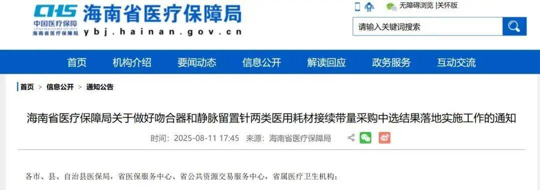 辽宁24省联盟集采并非孤例,近期全国各地医用耗材集采工作密集推进。8月11日同一天,海南省医疗保障局发布通知,要求全省公立医疗机构和医保定点社会办医疗机构执行吻合器和静脉留置针接续采购结果。